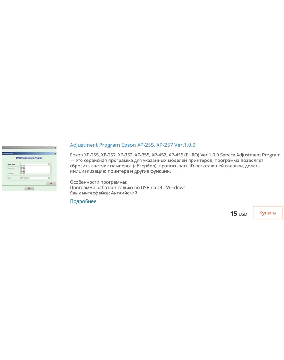 Сброс памперса в Epson XP-255, XP-257, XP-352, XP-355, XP-452, XP-455