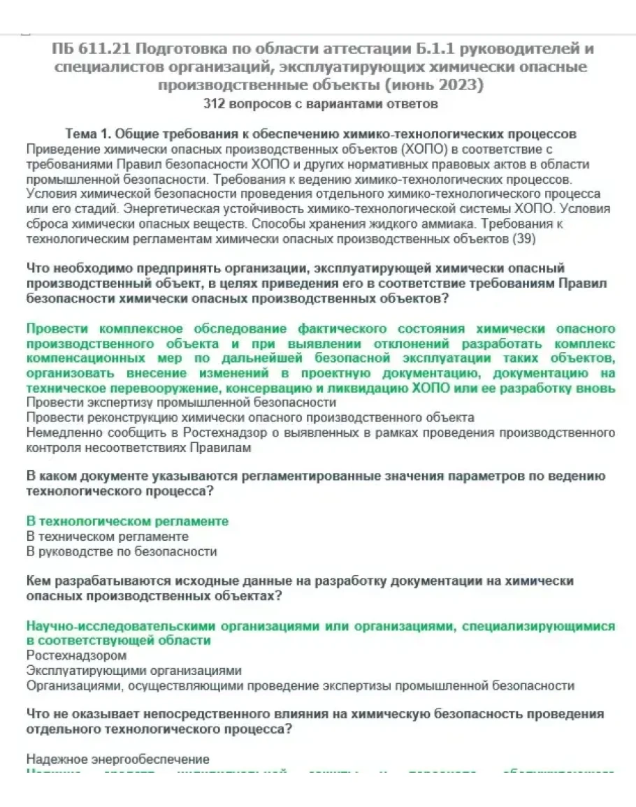Вопросы с ответами к курсам ОКС-Олимп Б.1.1 ПБ 611.21 (июнь 2023) Подготовка и аттестация руководителей и специалистов организаций, эксплуатирующих химически опасные производственные объекты
