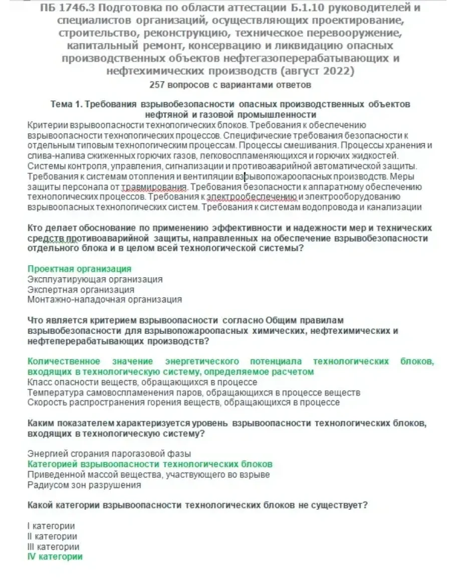 Вопросы с ответами к курсам ОКС-Олимп Б.1.10 ПБ 1746.3 (август 2022) Подготовка по области аттестации Б.1.10 руководителей и специалистов организаций, осуществляющих проектирование, строительство, реконструкцию, техническое перевооружение, капитальный ремонт, консервацию и ликвидацию опасных производственных объектов нефтегазоперерабатывающих и нефтехимических производств