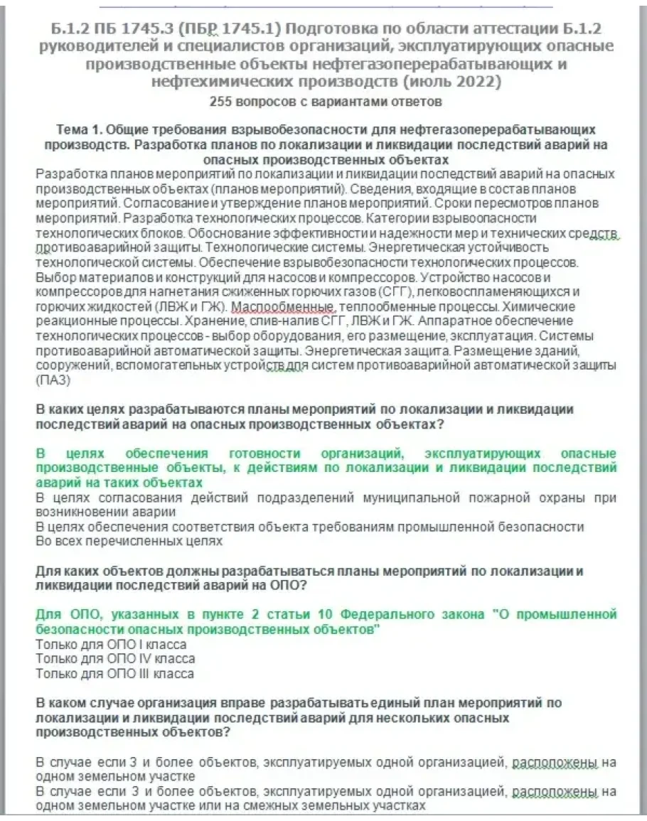 Вопросы с ответами к курсам ОКС-Олимп Б.1.2 ПБ 1745.3 (июль 2022) Подготовка по области аттестации Б.1.2 руководителей и специалистов организаций, эксплуатирующих опасные производственные объекты нефтегазоперерабатывающих и нефтехимических производств