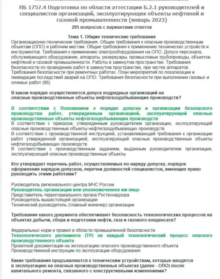 Вопросы с ответами к курсам ОКС-Олимп Б.2.1 ПБ 1757.4 (январь 2023) Подготовка по области аттестации Б.2.1 руководителей и специалистов организаций, эксплуатирующих объекты нефтяной и газовой промышленности