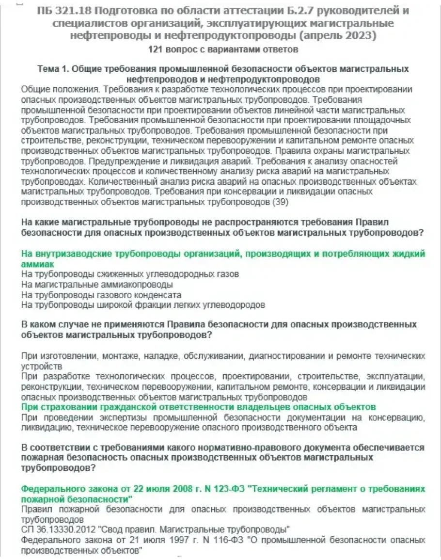 Вопросы с ответами к курсам ОКС-Олимп Б.2.7 ПБ 321.18 (апрель 2023) Подготовка и аттестация руководителей и специалистов организаций, эксплуатирующих магистральные нефтепроводы и нефтепродуктопроводы