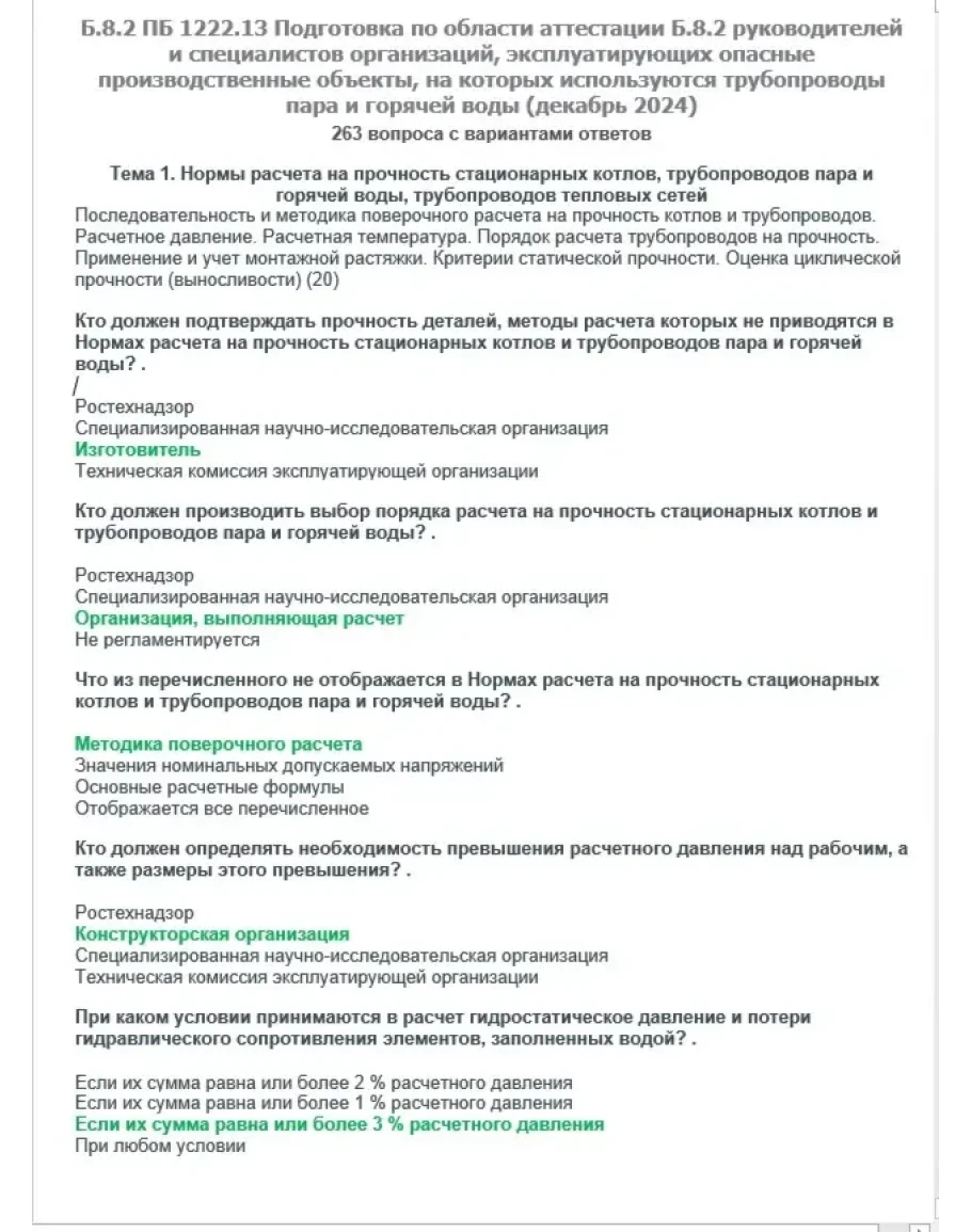 Вопросы с ответами к курсам ОКС-Олимп Б.8.2 ПБ 1222.13 (декабрь 2024) Подготовка по области аттестации Б.8.2 руководителей и специалистов организаций, эксплуатирующих опасные производственные объекты, на которых используются трубопроводы пара