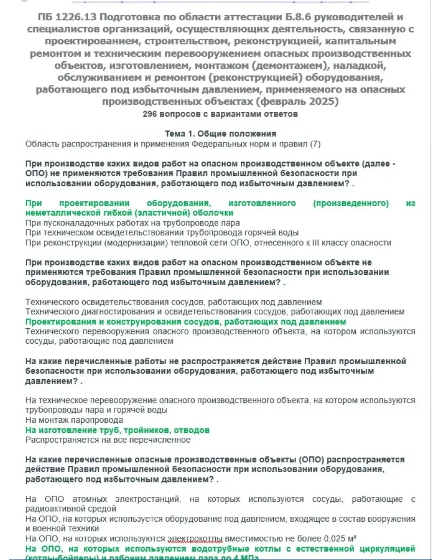 Вопросы с ответами к курсам ОКС-Олимп Б.8.6 ПБ 1226.13 (февраль 2025) Подготовка по области аттестации руководителей и специалистов организаций, осуществляющих деятельность, связанную с проектированием, строительством, реконструкцией
