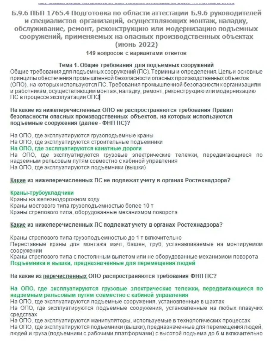 Вопросы с ответами к курсам ОКС-Олимп Б.9.6 ПБ 1765.4 (июнь 2022) Монтаж, наладка, обслуживание, ремонт, реконструкция или модернизация подъемных сооружений, применяемых на опасных производственных объектах