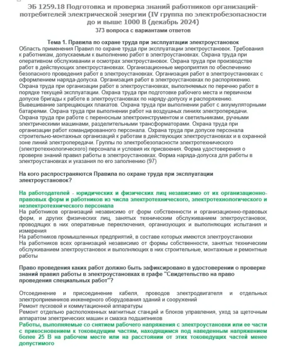 Вопросы с ответами к курсам ОКС-Олимп ЭБ 1259.18 (декабрь 2024) Подготовка и проверка знаний работников организаций-потребителей электрической энергии (IV группа до и выше 1000В)