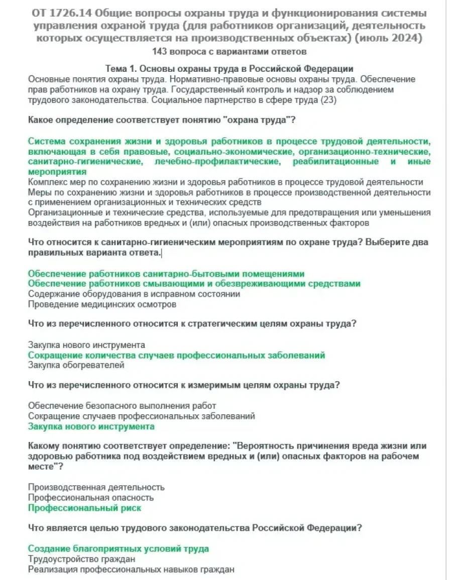 Вопросы с ответами к курсам ОКС-Олимп ОТ 1726.14 (июль 2024) Общие вопросы охраны труда и функционирования системы управления охраной труда (для работников организаций, деятельность которых осуществляется на производственных объектах)