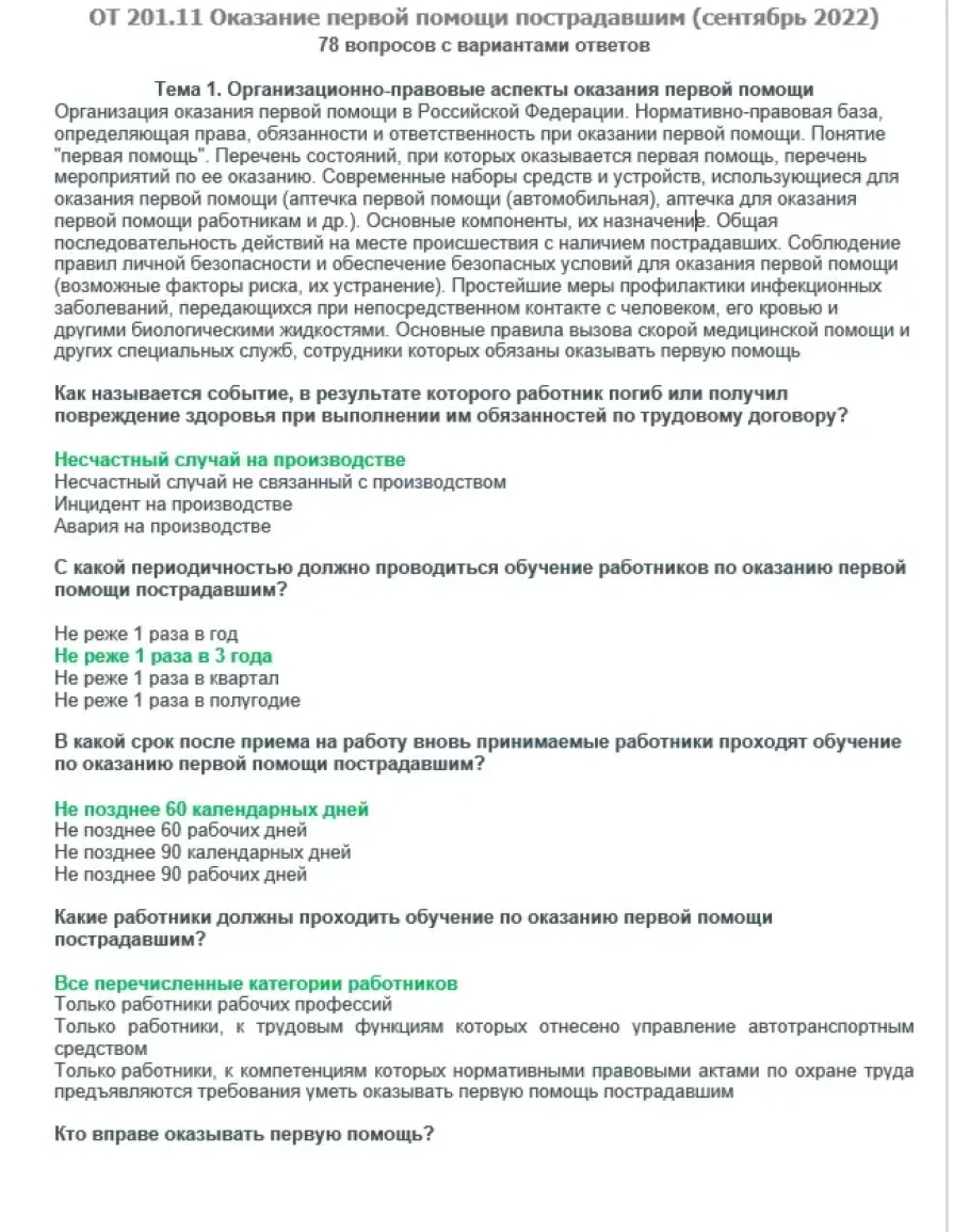 Вопросы с ответами к курсам ОКС-Олимп ОТ 201.11 (сентябрь 2022) Оказание первой помощи пострадавшим