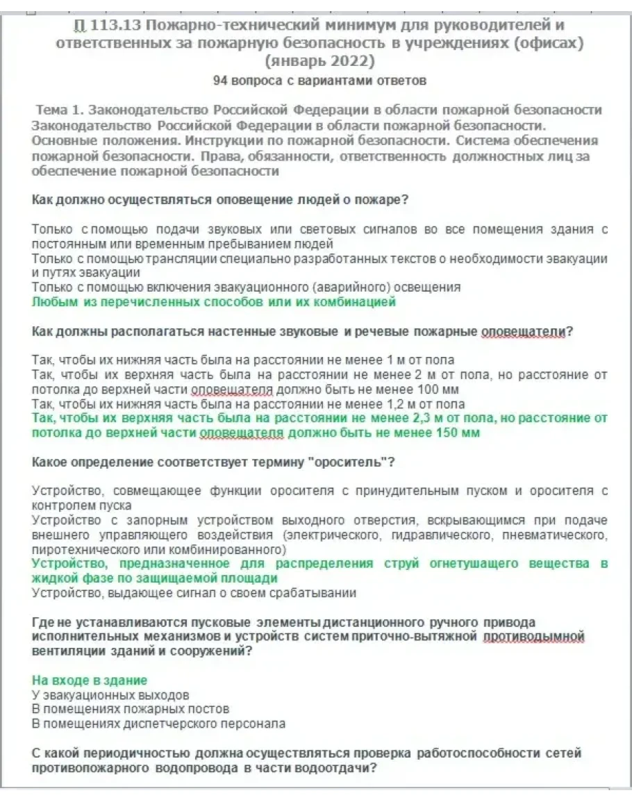 Вопросы с ответами к курсам ОКС-Олимп П 113.13 (январь 2022) ПТМ для руководителей и ответственных за пожарную безопасность в учреждениях (офисах)