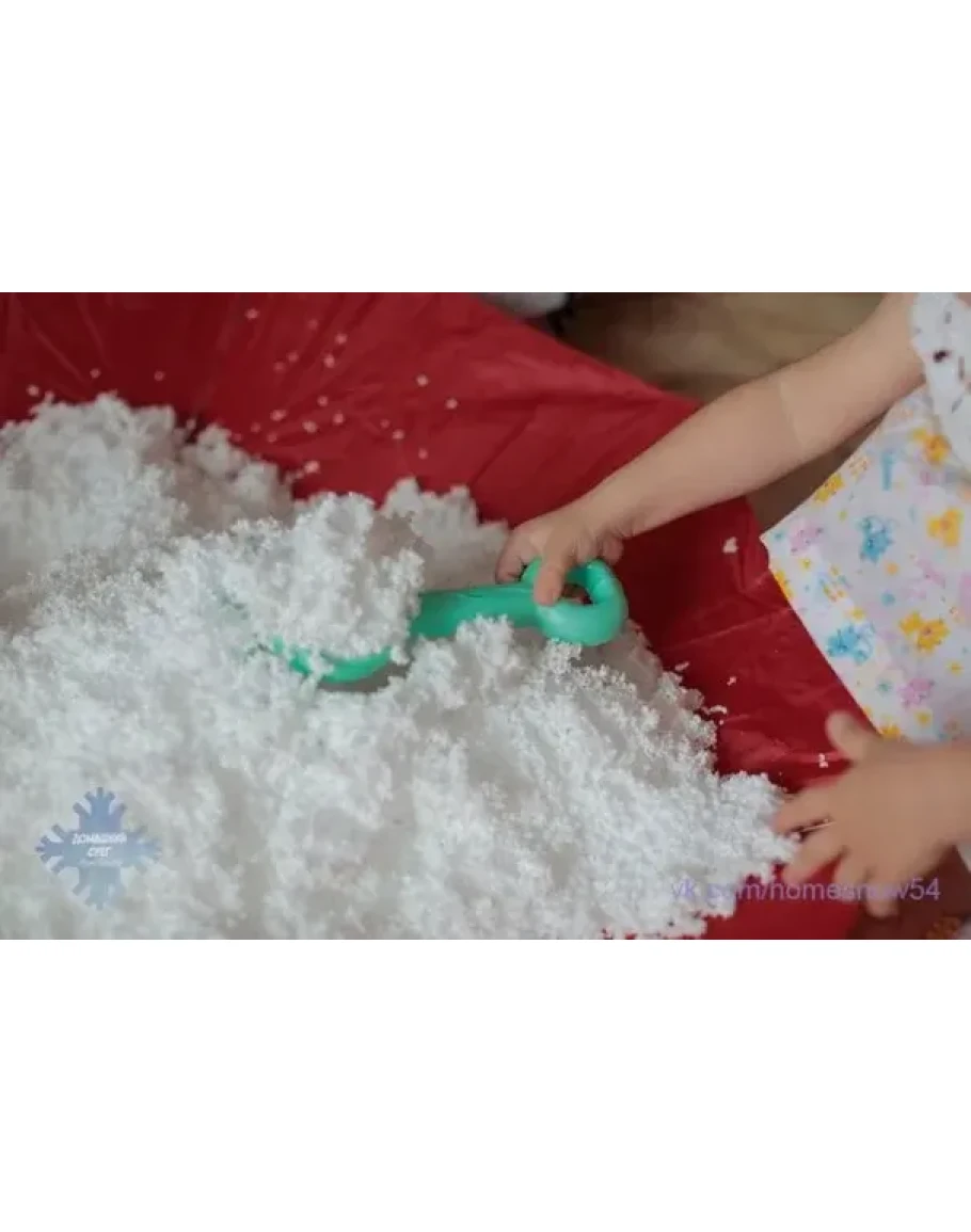 Пакет технологии изготовления материала для детского творчества «Домашний снег». «Домашний снег» словно магнит притягивает детские ручки. Он позволяет возводить невероятные сооружения, замки и различные башни, скатывать настоящих снеговиков, и лепить зверюшек. «Домашний снег» представляет из себя гранулы вспененного полистирола. Каждая гранула покрыта связующим веществом на водной основе. Гранулы хорошо прилипают друг к другу, но не липнут и не оставляют следов на руках и мебели. Важным преимуществом является то, что «домашний снег» долгое время остается липким, легко собирается с поверхности и играть с ним можно снова и снова.