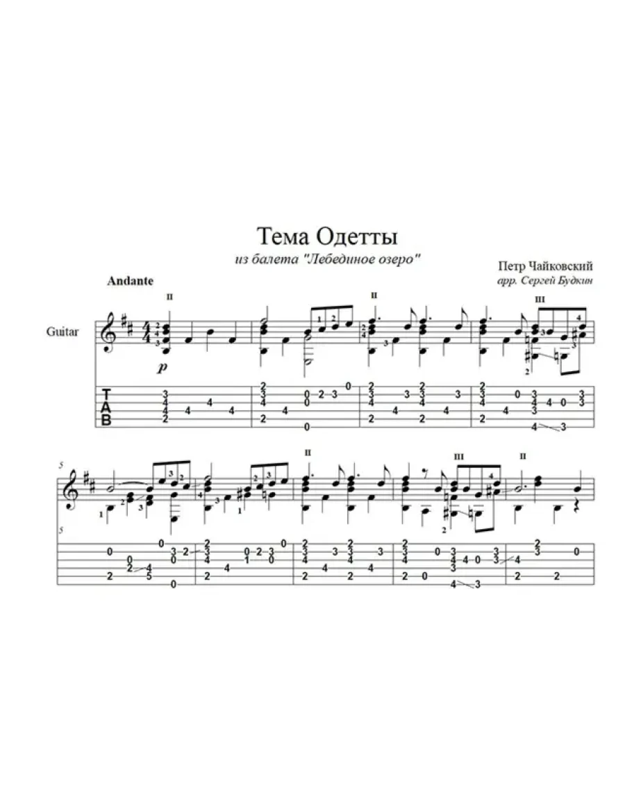 Аранжировка для гитары Темы Одетты из балета Петра Ильича Чайковского "Лебединое озеро".