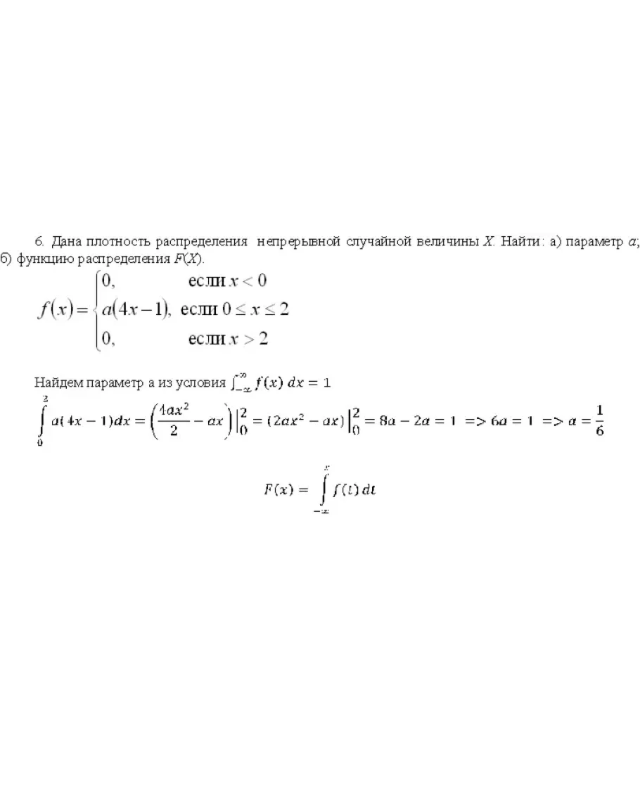 6. Дана плотность распределения непрерывной случайной величины Х. Найти: а) параметр а; б) функцию распределения F(X).