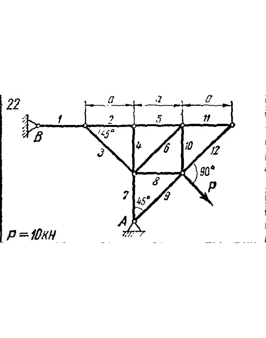 Решение задачи С1 вариант 22 из решебника по теоретической механике Яблонский А.А. 1978г, на тему: Определение реакций опор и усилий в стержнях плоской фермы (стр. 5).