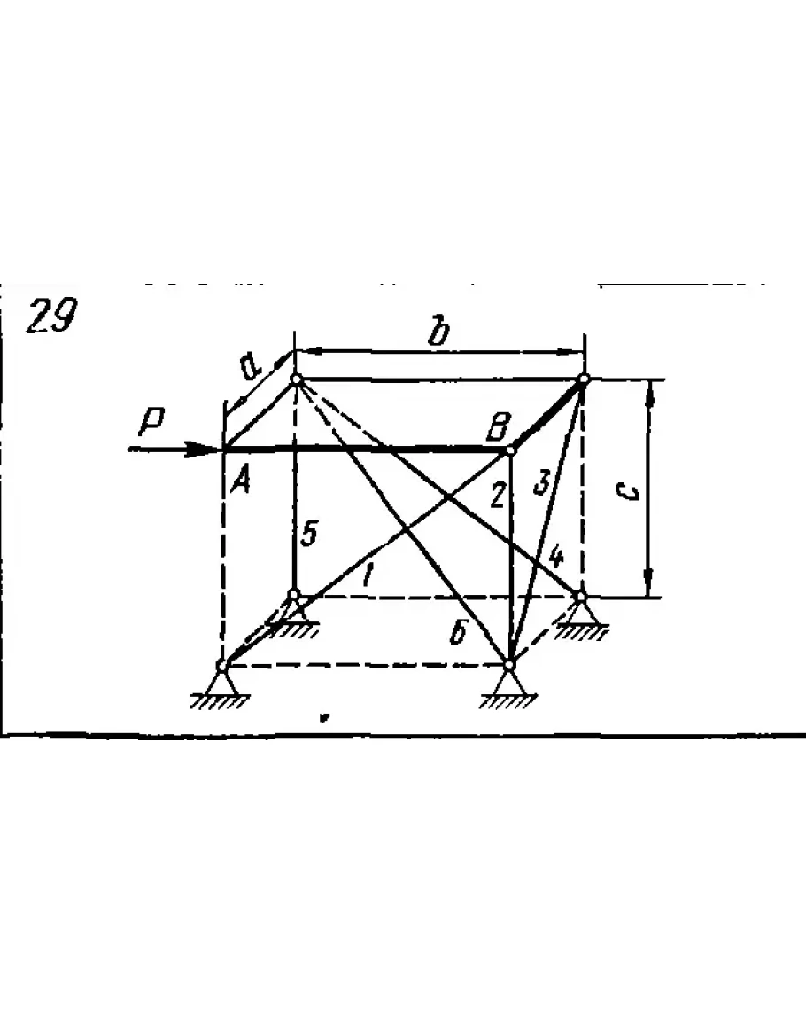 Решение задачи С11 вариант 29 из решебника к сборнику по теоретической механике Яблонский А.А. 1978 г., II. Система сил, не лежащих в одной плоскости. Система произвольно расположенных сил: на тему: С11 Определение реакций стержней, поддерживающих прямоугольною плиту (стр. 64).