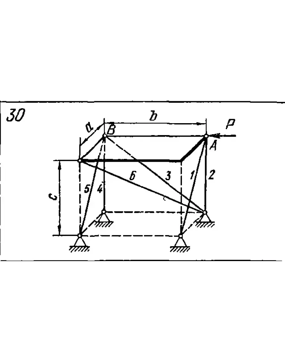 Решение задачи С11 вариант 30 из решебника к сборнику по теоретической механике Яблонский А.А. 1978 г., II. Система сил, не лежащих в одной плоскости. Система произвольно расположенных сил: на тему: С11 Определение реакций стержней, поддерживающих прямоугольною плиту (стр. 64).