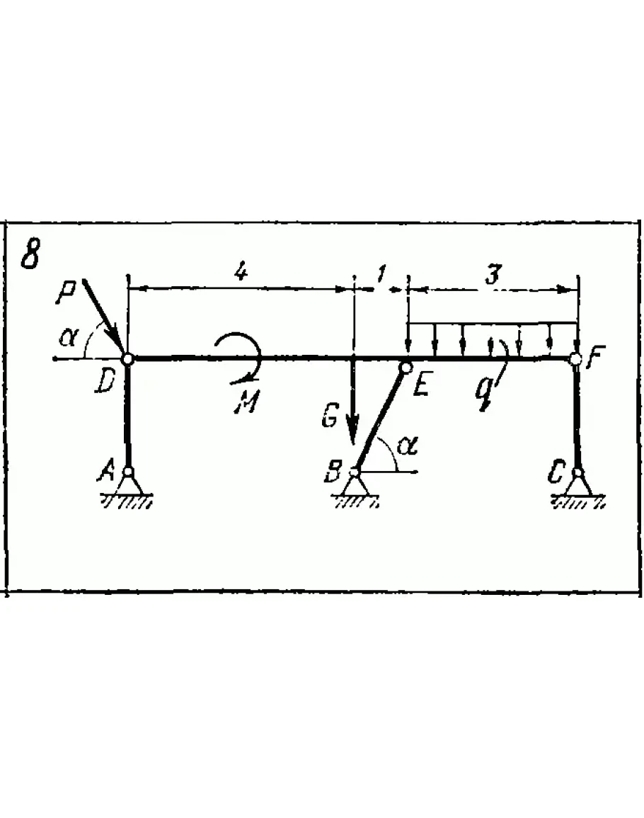 Решение задачи С1 вариант 8 из решебника по теоретической механике Яблонский А.А. 1978г, на тему: Определение реакций опор и усилий в стержнях плоской фермы (стр. 5).