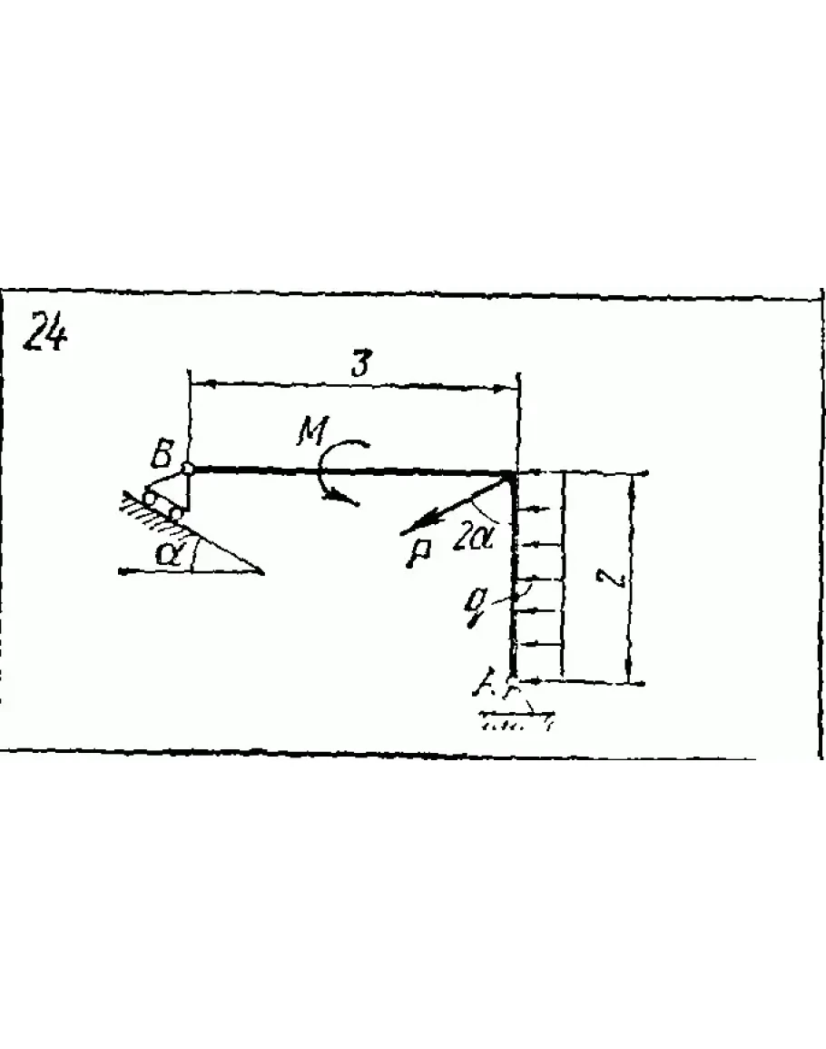 Решение задачи С2 вариант 24 из решебника по теоретической механике Яблонский А.А. 1978 г., на тему: С2 Определение реакции опор твердого тела (стр. 12 в сборнике).