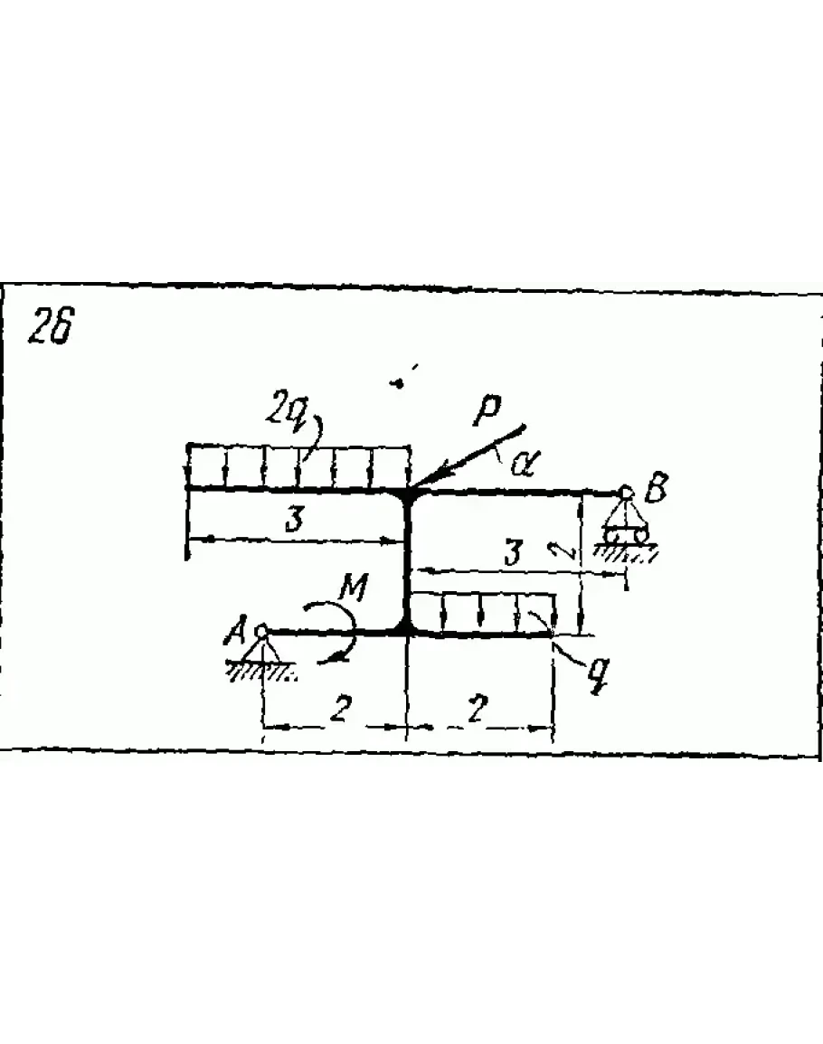 Решение задачи С2 вариант 26 из решебника по теоретической механике Яблонский А.А. 1978 г., на тему: С2 Определение реакции опор твердого тела (стр. 12 в сборнике).