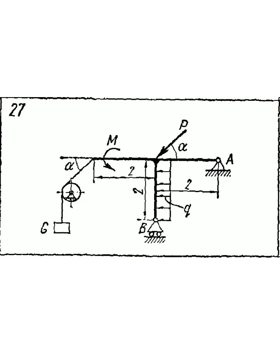 Решение задачи С2 вариант 27 из решебника по теоретической механике Яблонский А.А. 1978 г., на тему: С2 Определение реакции опор твердого тела (стр. 12 в сборнике).