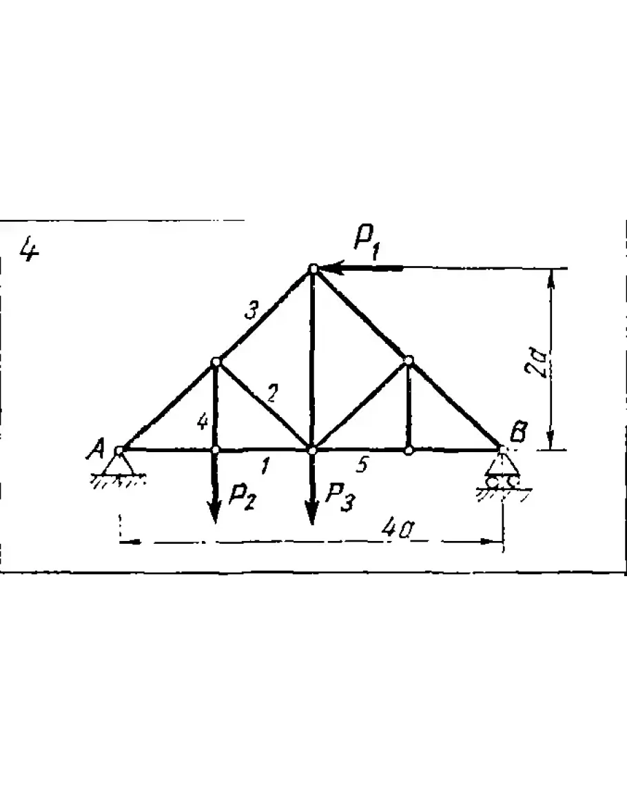 Решение задачи С3 вариант 4 из решебника по теоретической механике Яблонский А.А. 1978 г., на тему: СЗ Определение усилии в стержнях плоской фермы способом Риттера (стр. 17).