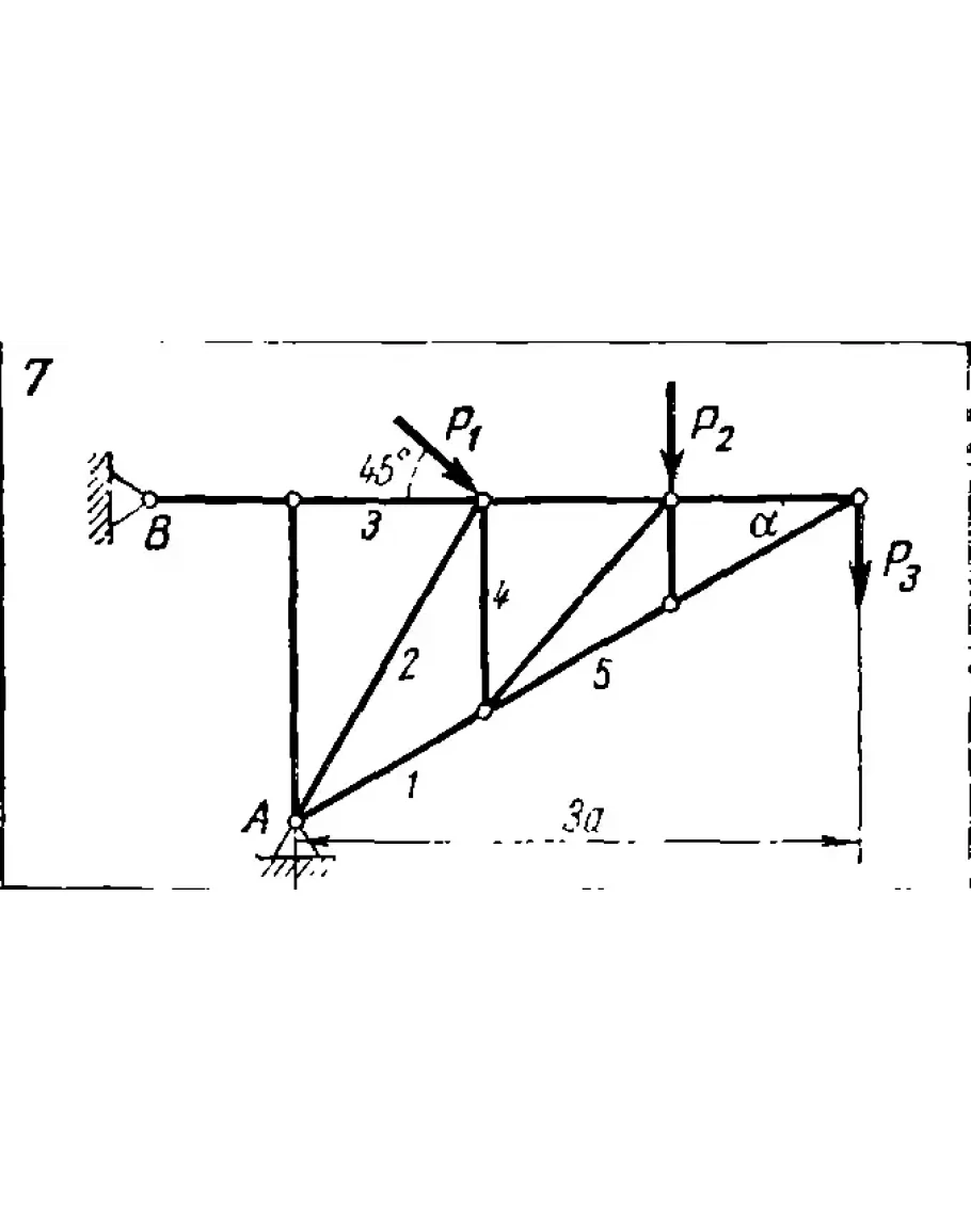 Решение задачи С3 вариант 7 из решебника по теоретической механике Яблонский А.А. 1978 г., на тему: СЗ Определение усилии в стержнях плоской фермы способом Риттера (стр. 17).
