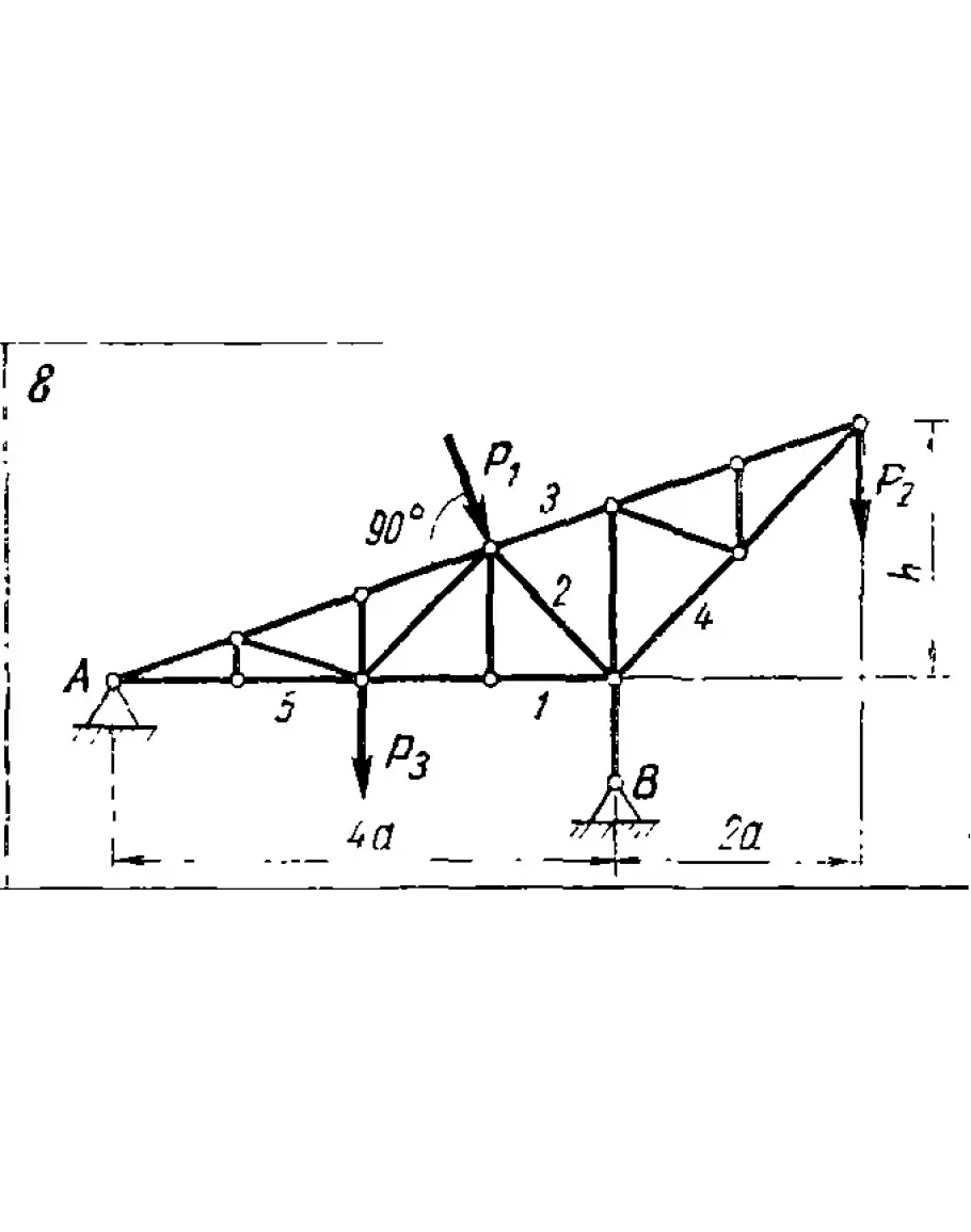 Решение задачи С3 вариант 8 из решебника по теоретической механике Яблонский А.А. 1978 г., на тему: СЗ Определение усилии в стержнях плоской фермы способом Риттера (стр. 17).