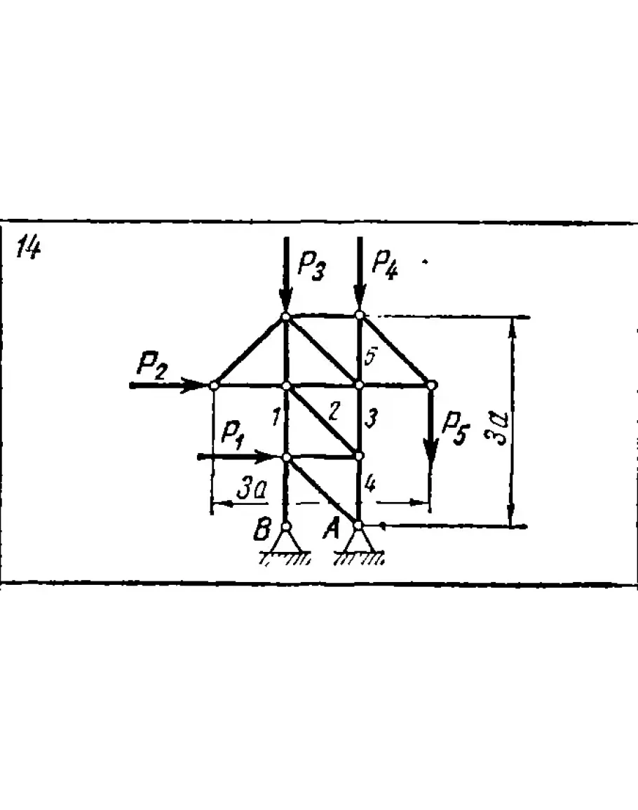 Решение задачи С3 вариант 14 из решебника по теоретической механике Яблонский А.А. 1978 г., на тему: СЗ Определение усилии в стержнях плоской фермы способом Риттера (стр. 17).