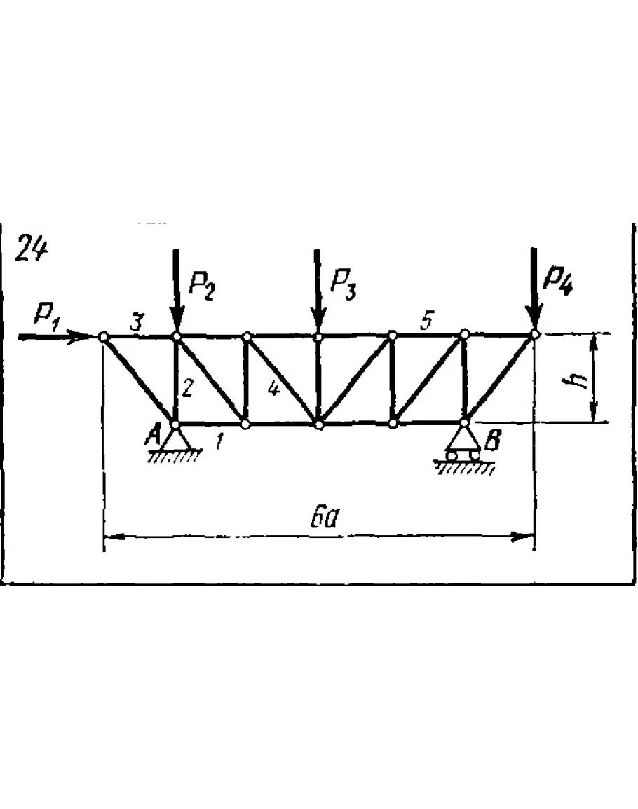 Решение задачи С3 вариант 24 из решебника по теоретической механике Яблонский А.А. 1978 г., на тему: СЗ Определение усилии в стержнях плоской фермы способом Риттера (стр. 17).