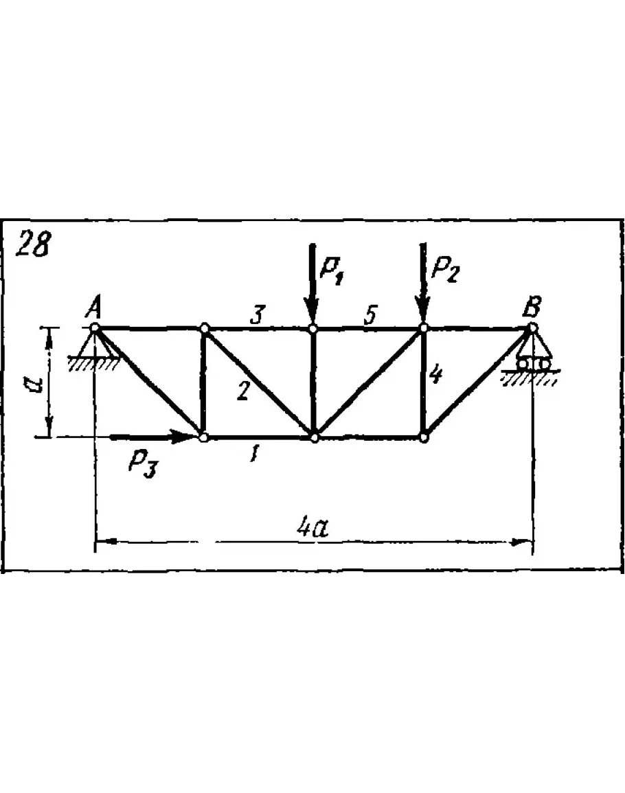 Решение задачи С3 вариант 28 из решебника по теоретической механике Яблонский А.А. 1978 г., на тему: СЗ Определение усилии в стержнях плоской фермы способом Риттера (стр. 17).
