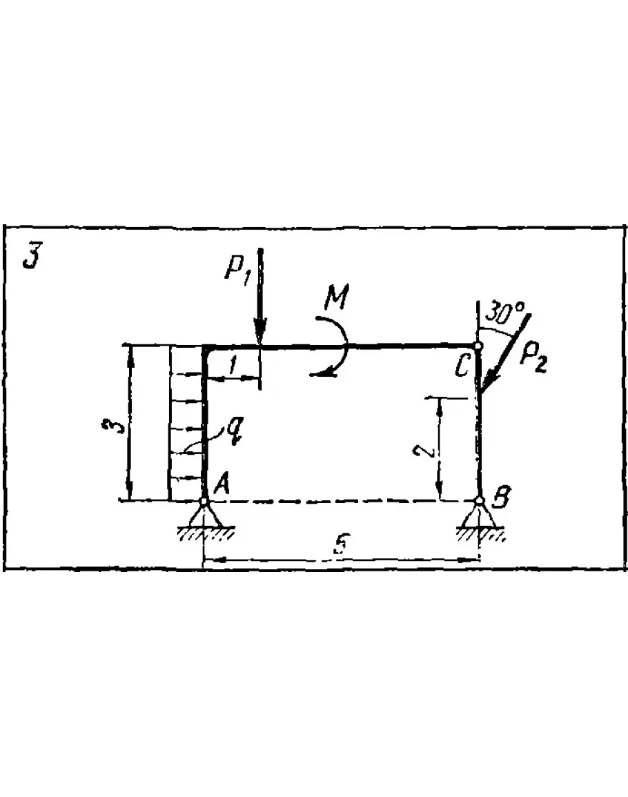 Решение задачи С5 вариант 3 из решебника по теоретической механике Яблонский А.А. 1978 г., на тему: С5 Определение реакций опор составной конструкции (система двух тел) (стр. 29 задачника)..