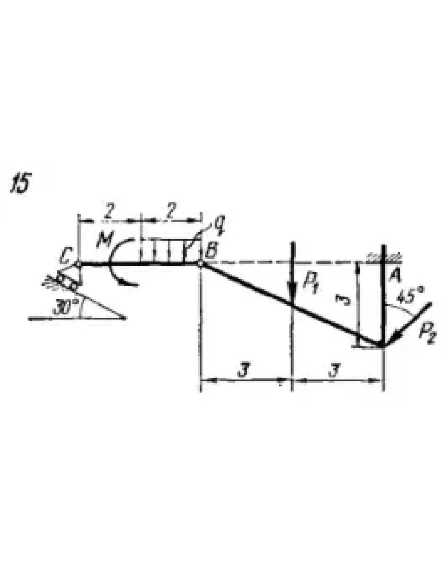 Решение задачи С5 вариант 15 из решебника по теоретической механике Яблонский А.А. 1978 г., на тему: С5 Определение реакций опор составной конструкции (система двух тел) (стр. 29 задачника)..