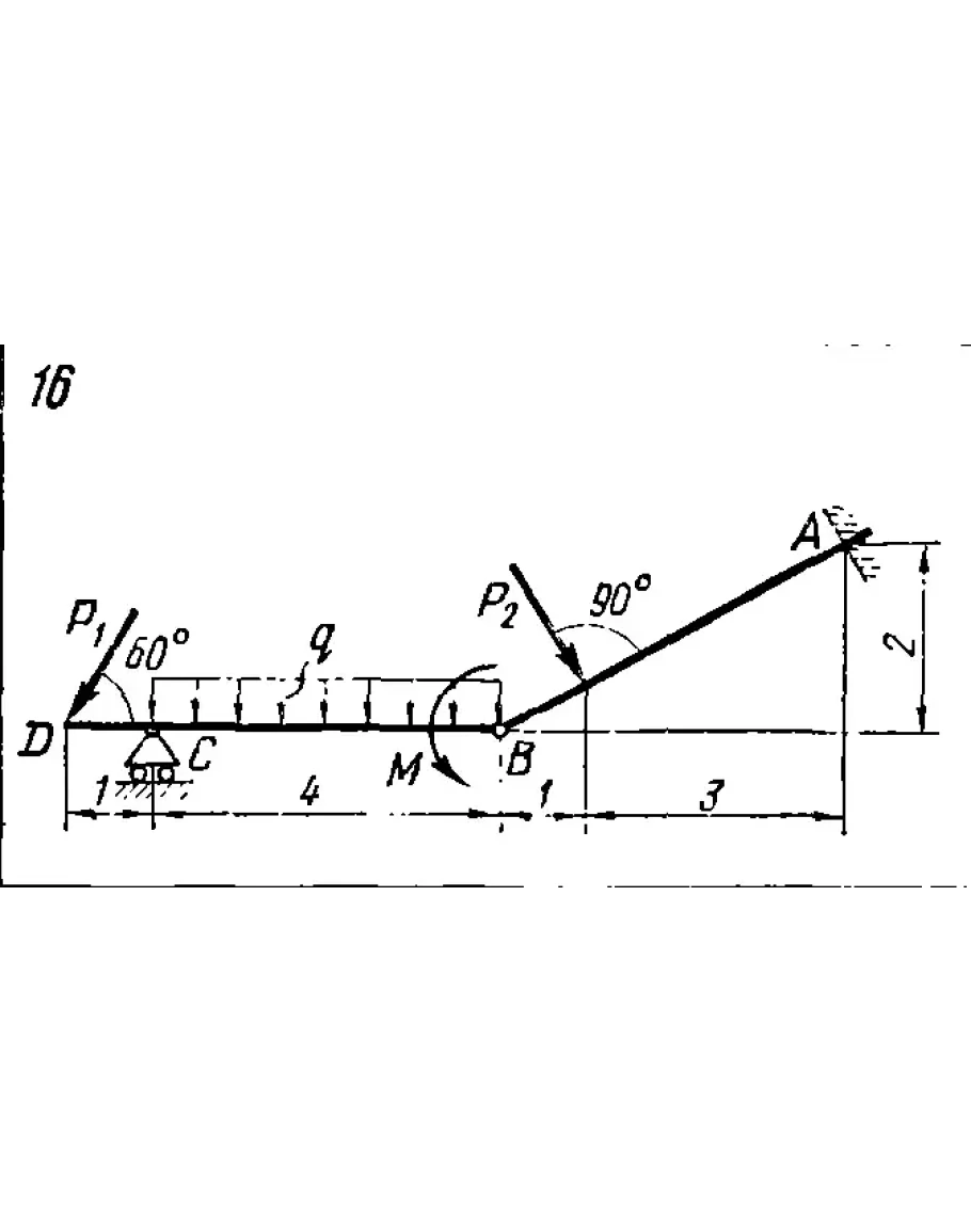 Решение задачи С5 вариант 16 из решебника по теоретической механике Яблонский А.А. 1978 г., на тему: С5 Определение реакций опор составной конструкции (система двух тел) (стр. 29 задачника)..