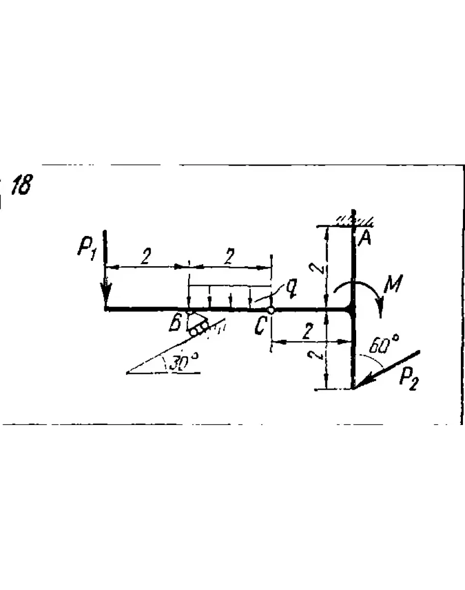 Решение задачи С5 вариант 18 из решебника по теоретической механике Яблонский А.А. 1978 г., на тему: С5 Определение реакций опор составной конструкции (система двух тел) (стр. 29 задачника)..