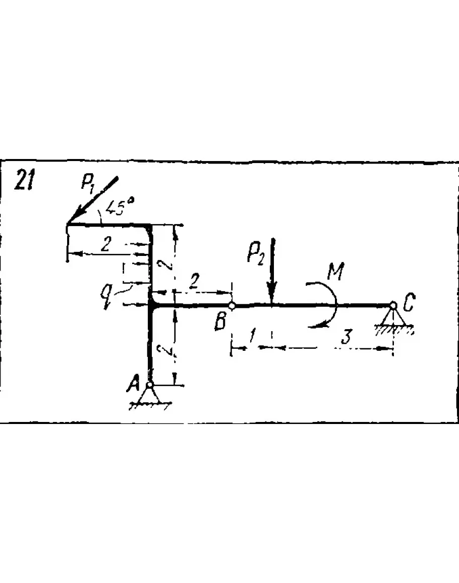 Решение задачи С5 вариант 21 из решебника по теоретической механике Яблонский А.А. 1978 г., на тему: С5 Определение реакций опор составной конструкции (система двух тел) (стр. 29 задачника)..