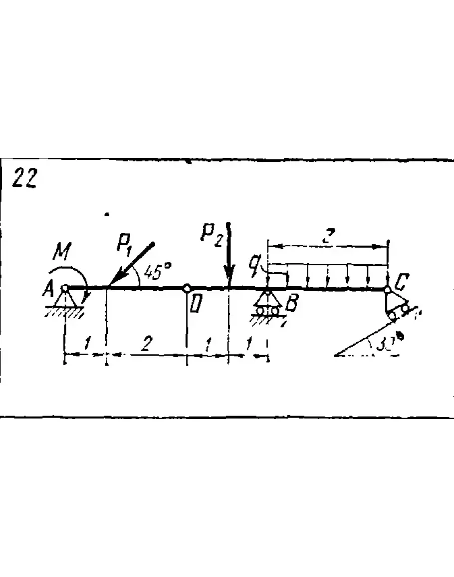 Решение задачи С5 вариант 22 из решебника по теоретической механике Яблонский А.А. 1978 г., на тему: С5 Определение реакций опор составной конструкции (система двух тел) (стр. 29 задачника)..