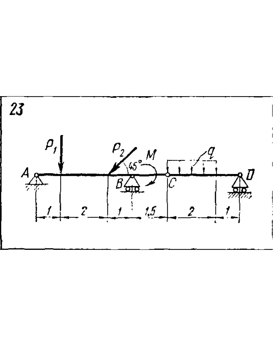 Решение задачи С5 вариант 23 из решебника по теоретической механике Яблонский А.А. 1978 г., на тему: С5 Определение реакций опор составной конструкции (система двух тел) (стр. 29 задачника)..