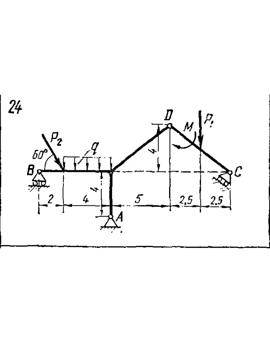 Решение задачи С5 вариант 24 из решебника по теоретической механике Яблонский А.А. 1978 г., на тему: С5 Определение реакций опор составной конструкции (система двух тел) (стр. 29 задачника)..