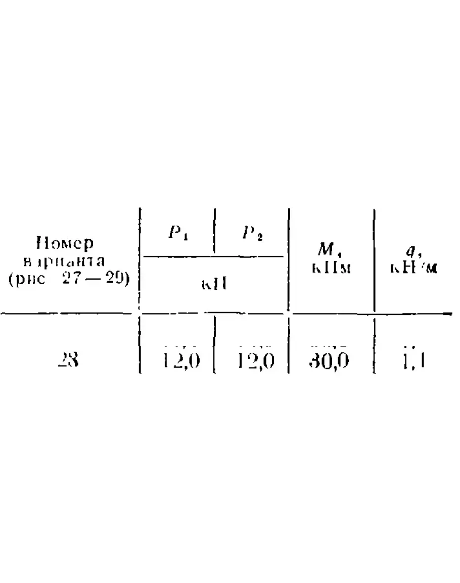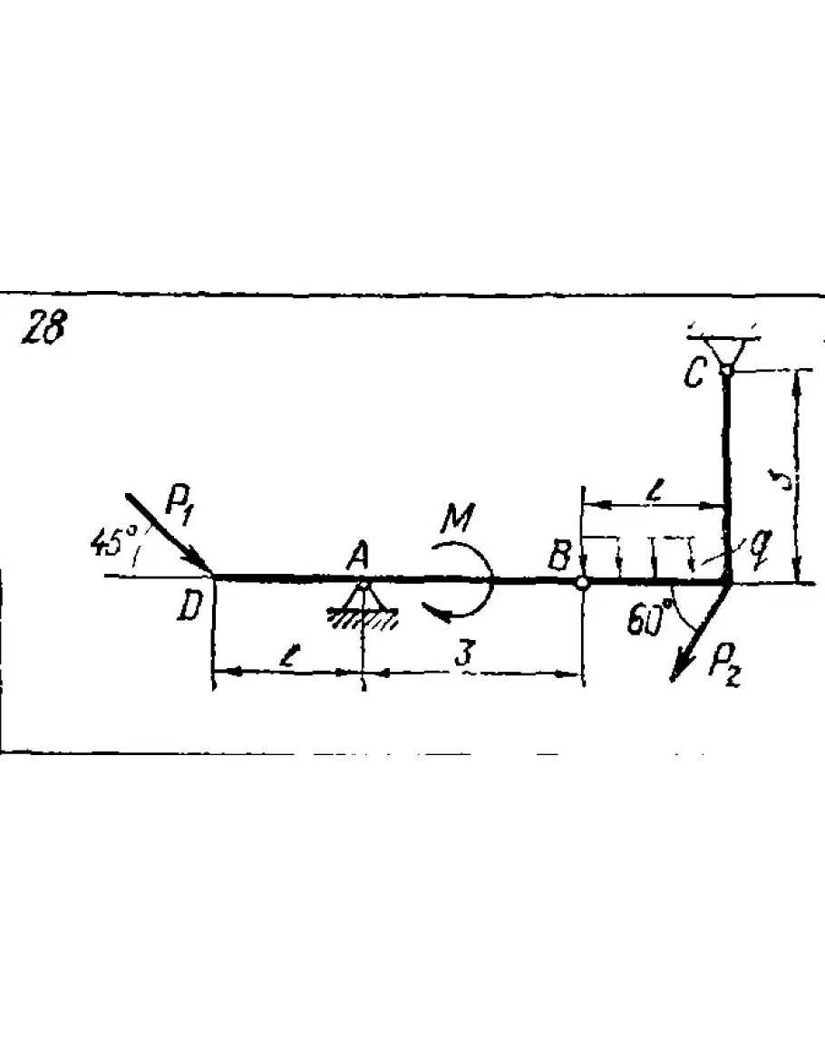 Решение задачи С5 вариант 28 из решебника по теоретической механике Яблонский А.А. 1978 г., на тему: С5 Определение реакций опор составной конструкции (система двух тел) (стр. 29 задачника)..