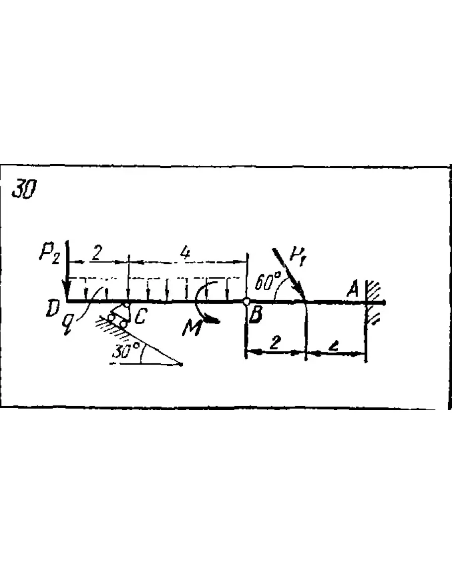 Решение задачи С5 вариант 30 из решебника по теоретической механике Яблонский А.А. 1978 г., на тему: С5 Определение реакций опор составной конструкции (система двух тел) (стр. 29 задачника)..