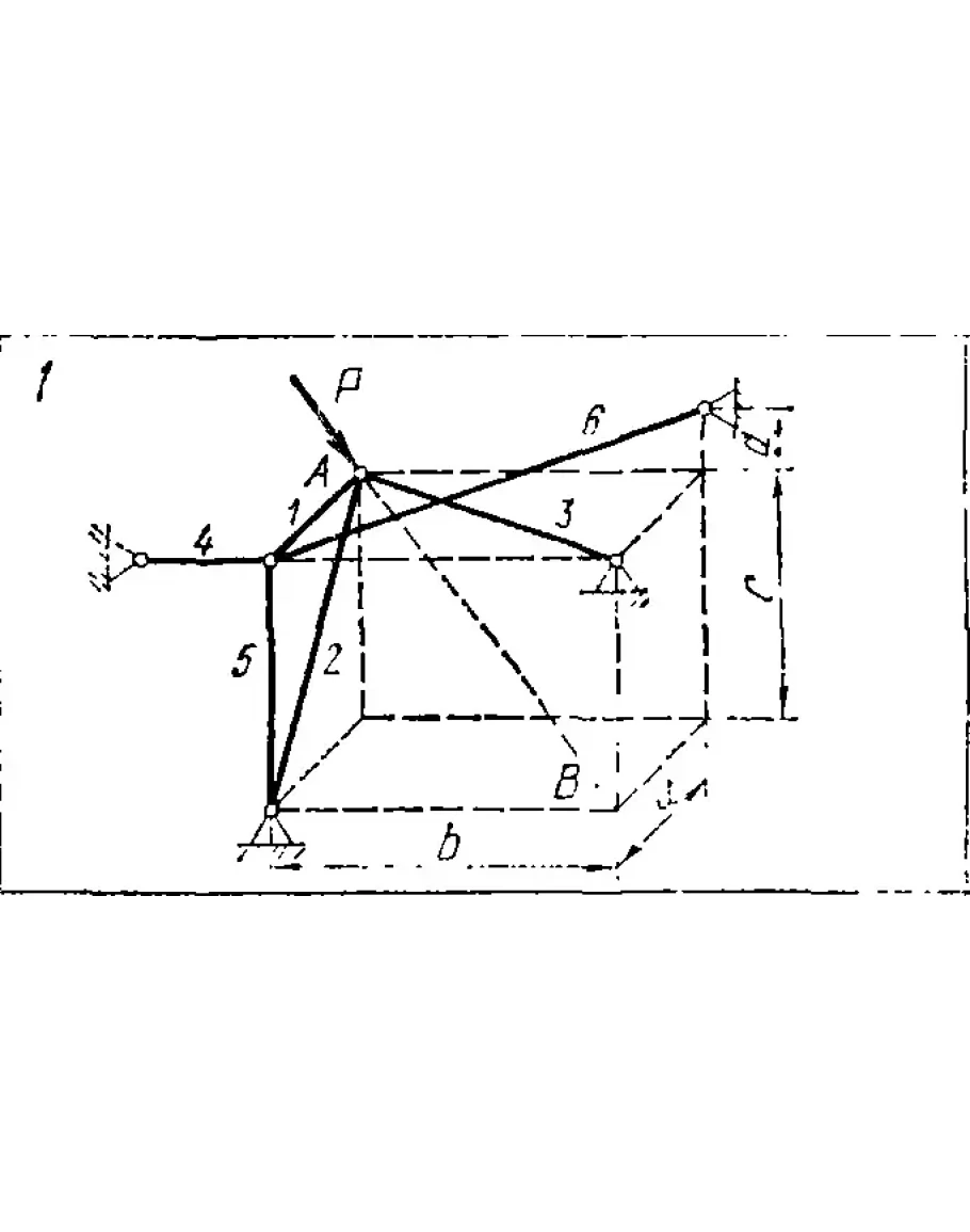 Решение задачи С8 вариант 1 из решебника к сборнику по теоретической механике Яблонский А.А. 1978 г., II. Система сил, не лежащих в одной плоскости. Система сходящихся сил: на тему: С8 Определение усилий в стержнях пространственной конструкции (стр. 48).