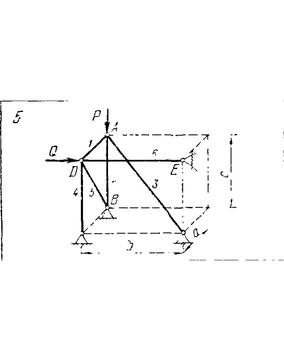 Решение задачи С8 вариант 5 из решебника к сборнику по теоретической механике Яблонский А.А. 1978 г., II. Система сил, не лежащих в одной плоскости. Система сходящихся сил: на тему: С8 Определение усилий в стержнях пространственной конструкции (стр. 48).