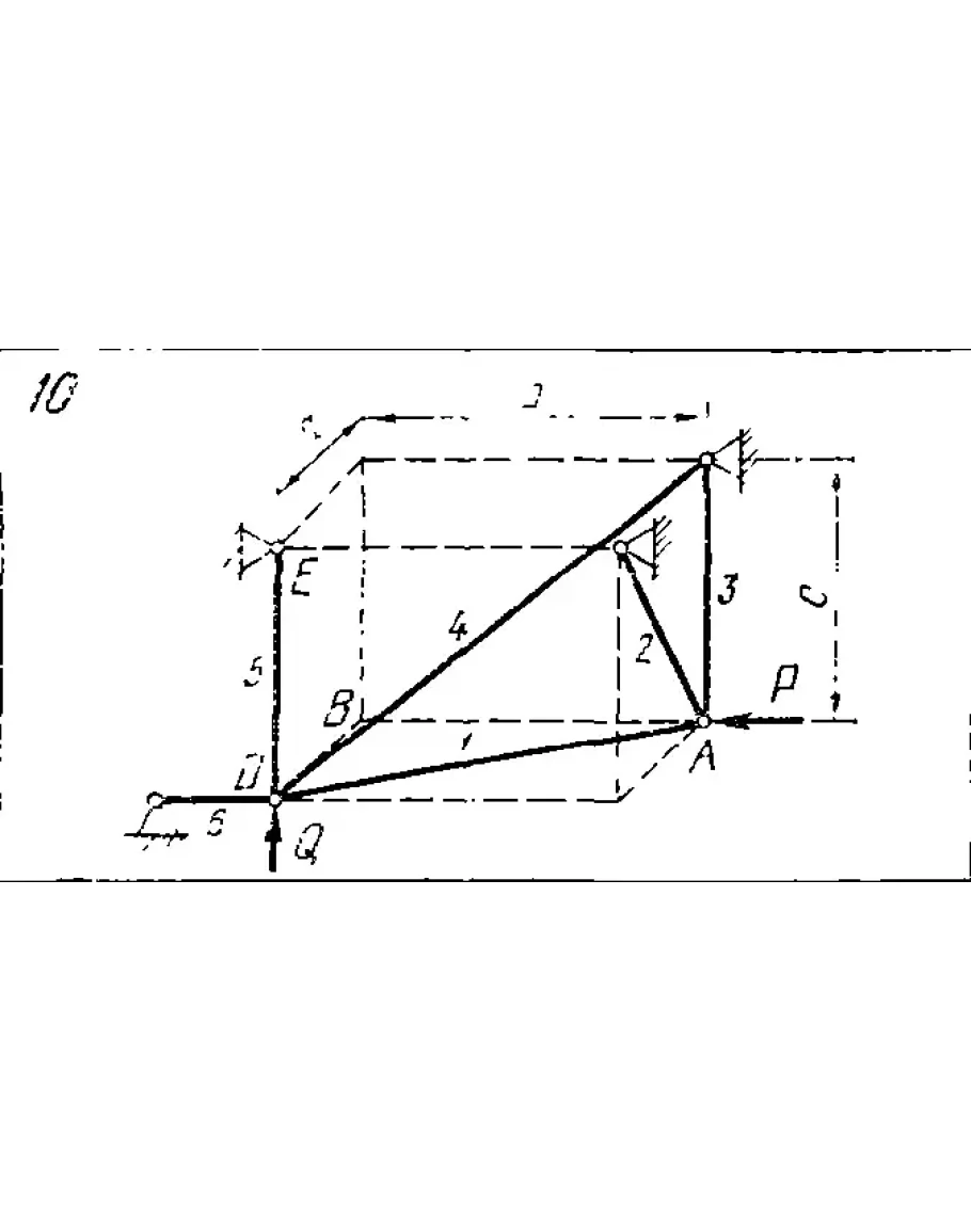 Решение задачи С8 вариант 10 из решебника к сборнику по теоретической механике Яблонский А.А. 1978 г., II. Система сил, не лежащих в одной плоскости. Система сходящихся сил: на тему: С8 Определение усилий в стержнях пространственной конструкции (стр. 48).