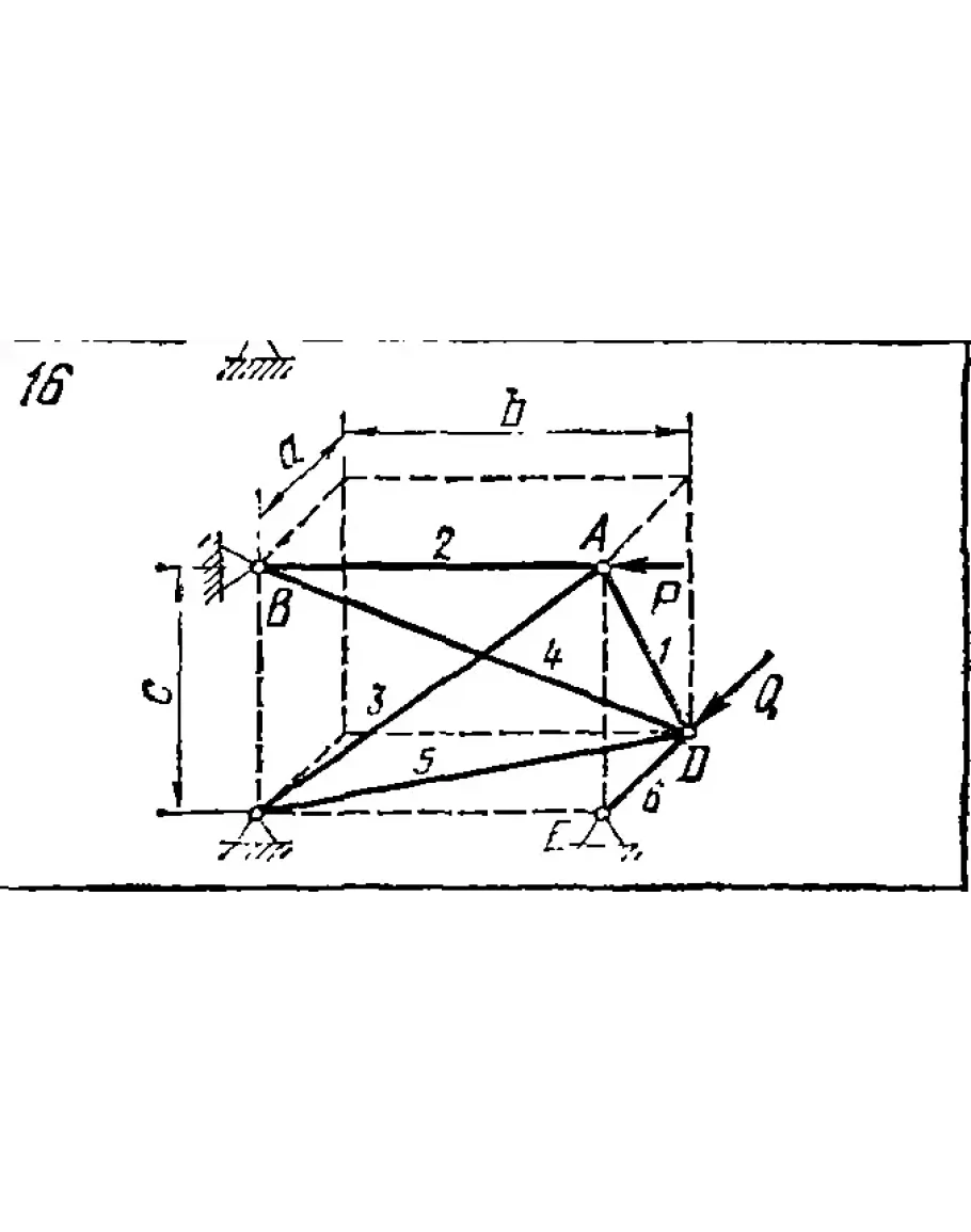 Решение задачи С8 вариант 16 из решебника к сборнику по теоретической механике Яблонский А.А. 1978 г., II. Система сил, не лежащих в одной плоскости. Система сходящихся сил: на тему: С8 Определение усилий в стержнях пространственной конструкции (стр. 48).