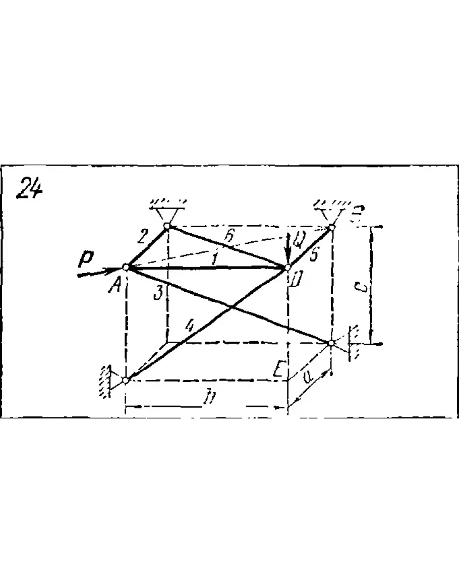 Решение задачи С8 вариант 24 из решебника к сборнику по теоретической механике Яблонский А.А. 1978 г., II. Система сил, не лежащих в одной плоскости. Система сходящихся сил: на тему: С8 Определение усилий в стержнях пространственной конструкции (стр. 48).