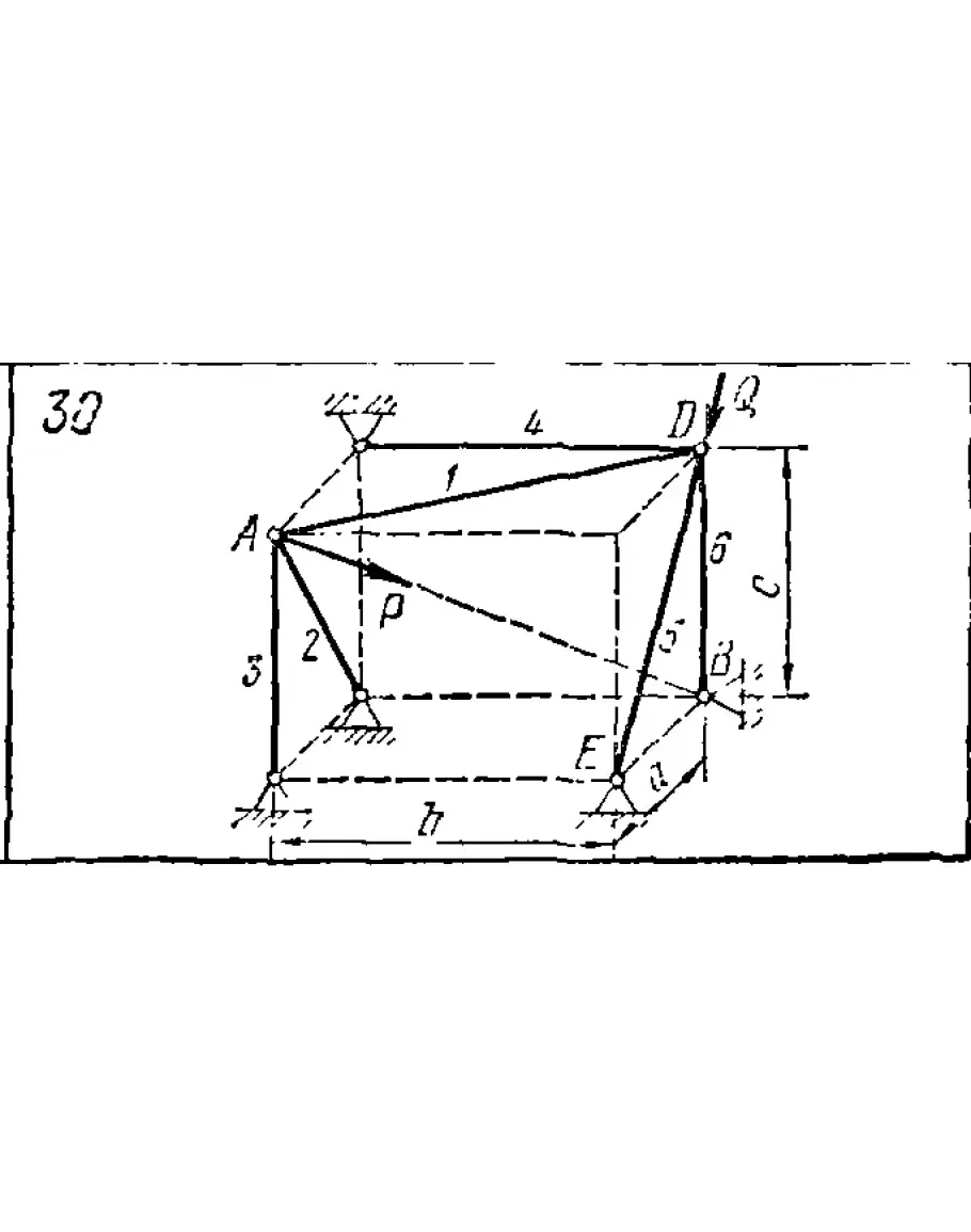 Решение задачи С8 вариант 30 из решебника к сборнику по теоретической механике Яблонский А.А. 1978 г., II. Система сил, не лежащих в одной плоскости. Система сходящихся сил: на тему: С8 Определение усилий в стержнях пространственной конструкции (стр. 48).