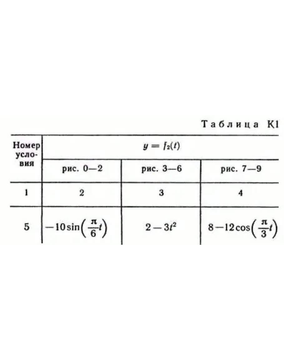 Зависимость x = f1(t) указана непосредственно на рисунках, а зависимость y = f2 дана в табл. K1 (для рис. 0—2 в столбце 2, для рис. 3—6 в столбце 3, для рис. 7—9 в столбце 4).