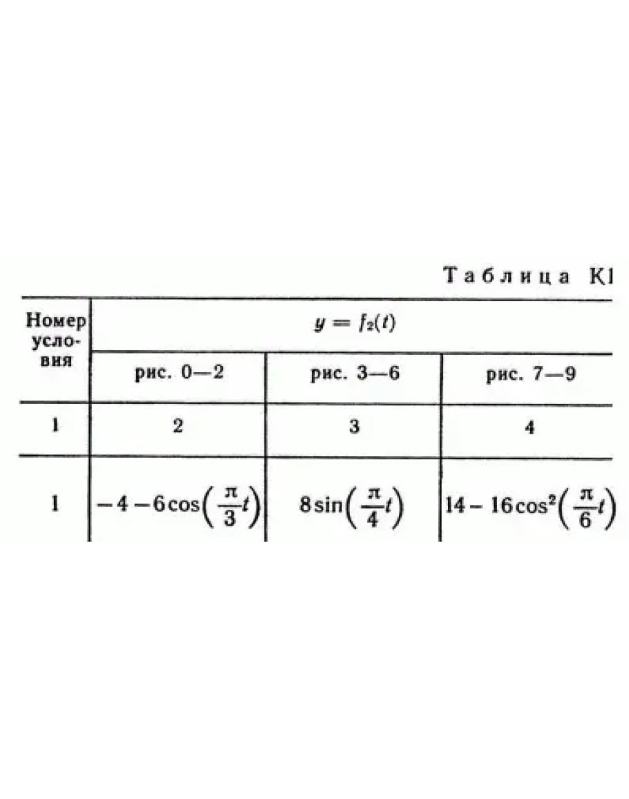 Зависимость x = f1(t) указана непосредственно на рисунках, а зависимость y = f2 дана в табл. K1 (для рис. 0—2 в столбце 2, для рис. 3—6 в столбце 3, для рис. 7—9 в столбце 4).
