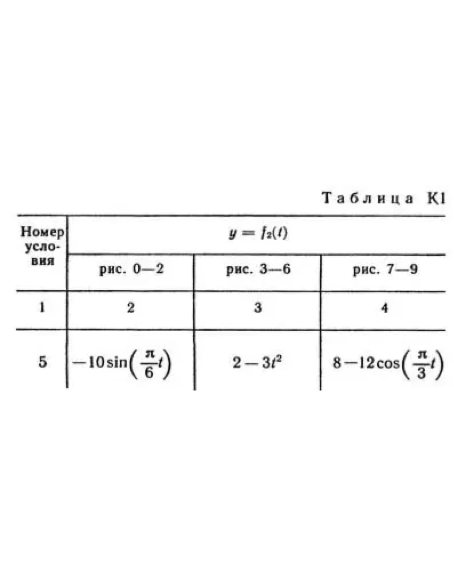 Зависимость x = f1(t) указана непосредственно на рисунках, а зависимость y = f2 дана в табл. K1 (для рис. 0—2 в столбце 2, для рис. 3—6 в столбце 3, для рис. 7—9 в стол