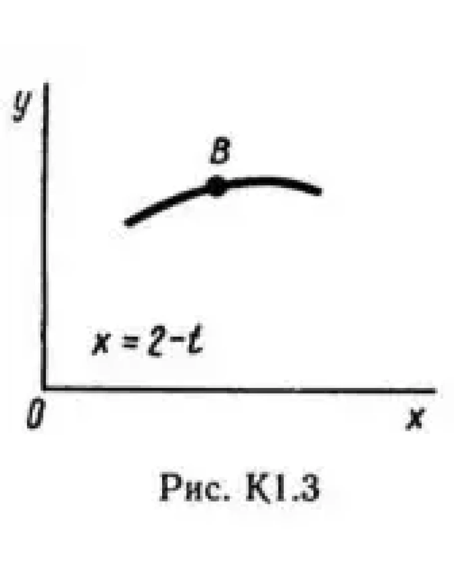 Точка В движется в плоскости xy (рис. К1.0 — К 1.9, табл. К1; траектория точки на рисунках показана условно). Закон движения точки задается уравнениями: x = f1(t), y = f2, где x и y выражены в сантиметрах, t — в секундах.