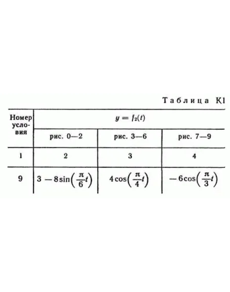Зависимость x = f1(t) указана непосредственно на рисунках, а зависимость y = f2 дана в табл. K1 (для рис. 0—2 в столбце 2, для рис. 3—6 в столбце 3, для рис. 7—9 в стол